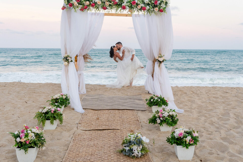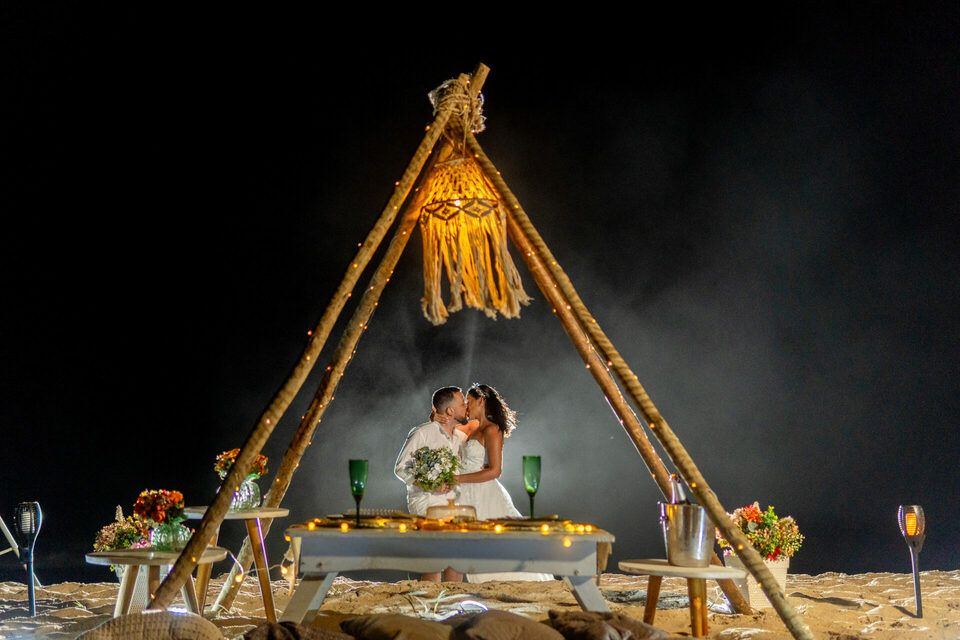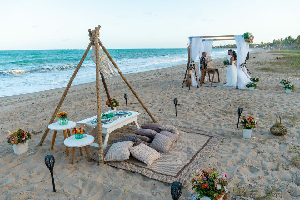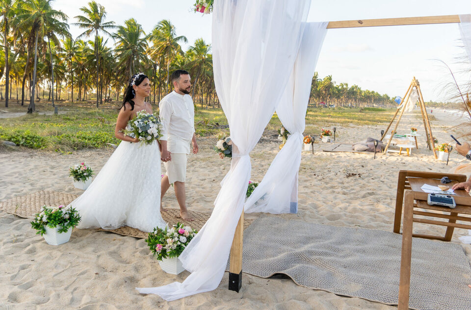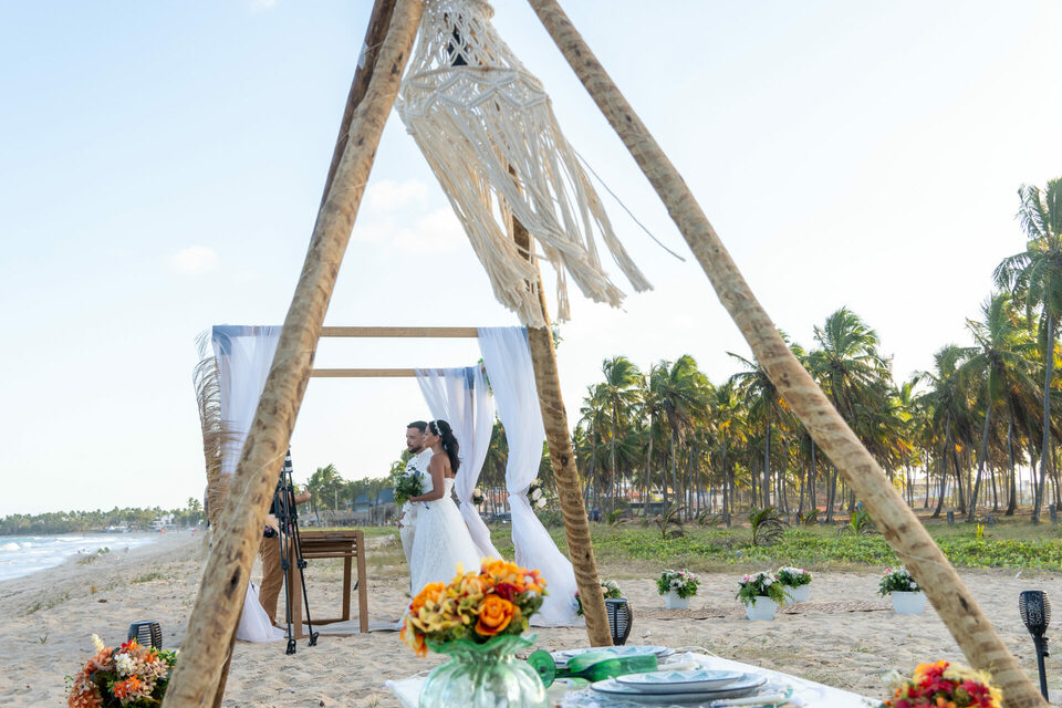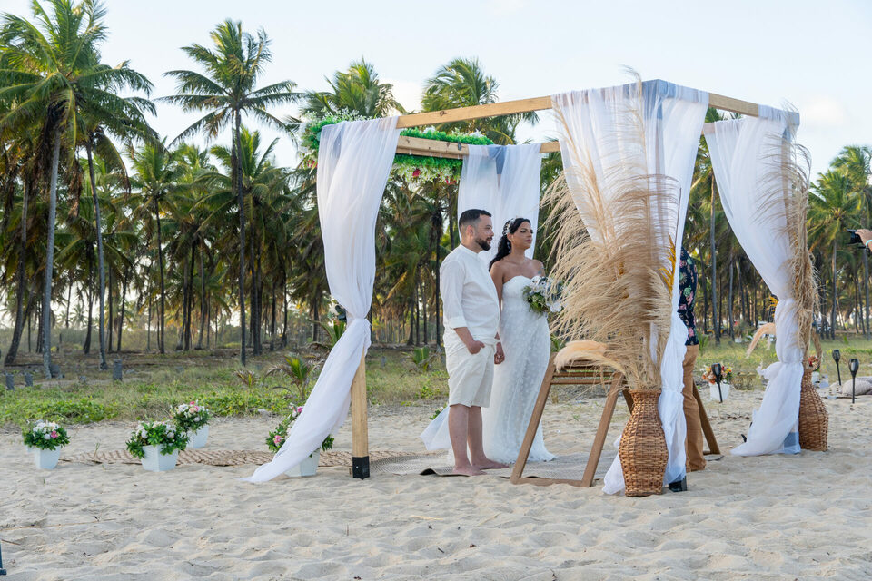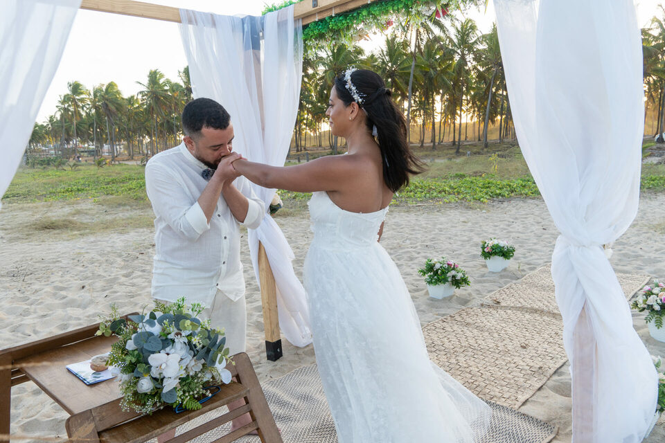 Um Casamento intimista pé na areia com Stéphanie & Guilerme no nascer do sol | Praia de Maracaípe - Porto de Galinhas PE