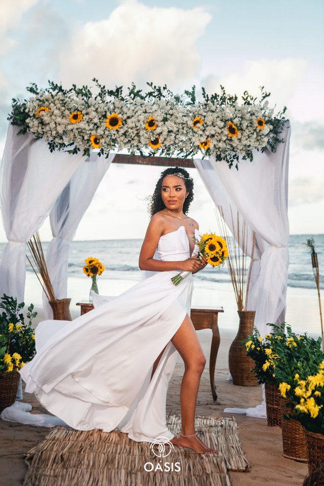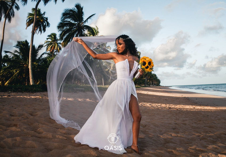 Um casamento pé na areia num cenário lindo e com um making of com fotos tradicinais e sensual, foi top esse elopement viu!