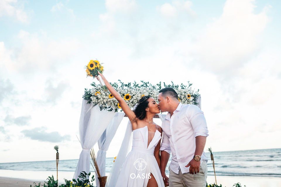 Casamento intimista pé na areia de Giselle & Thales com luau | Praia de Maracaípe - Porto de Galinhas PE