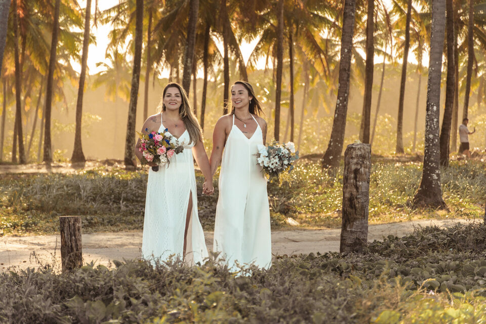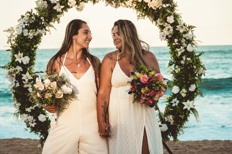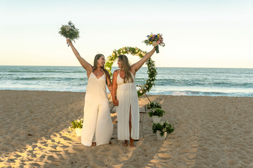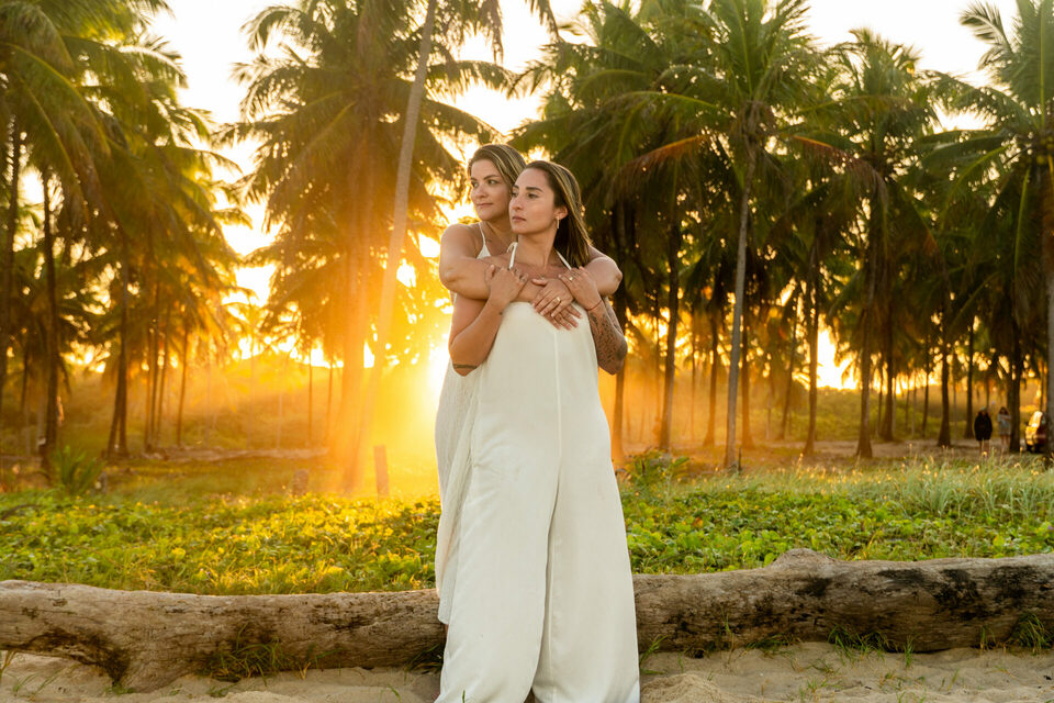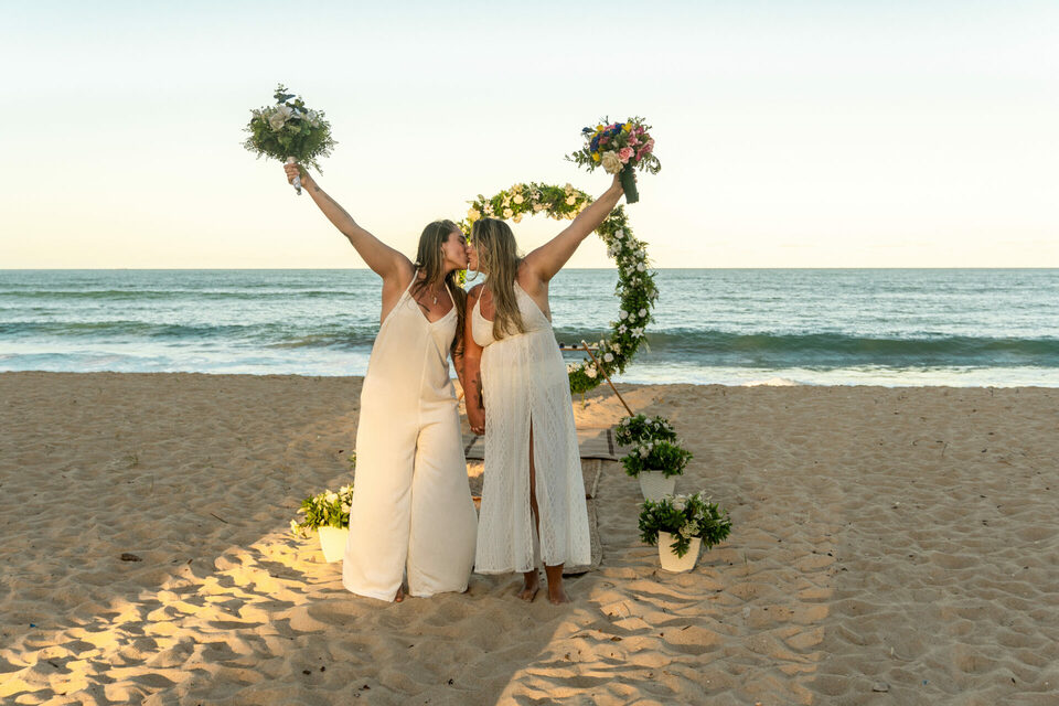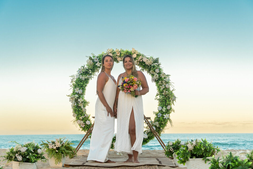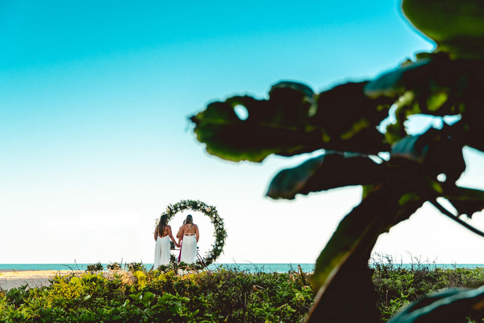 Um casamento intimista pé na areia homoafetivo com duas mulheres lindas, cheio de emoção, numa das praias mais lindas de Pernambuco
