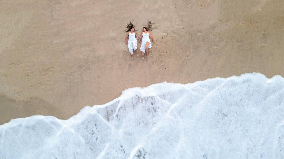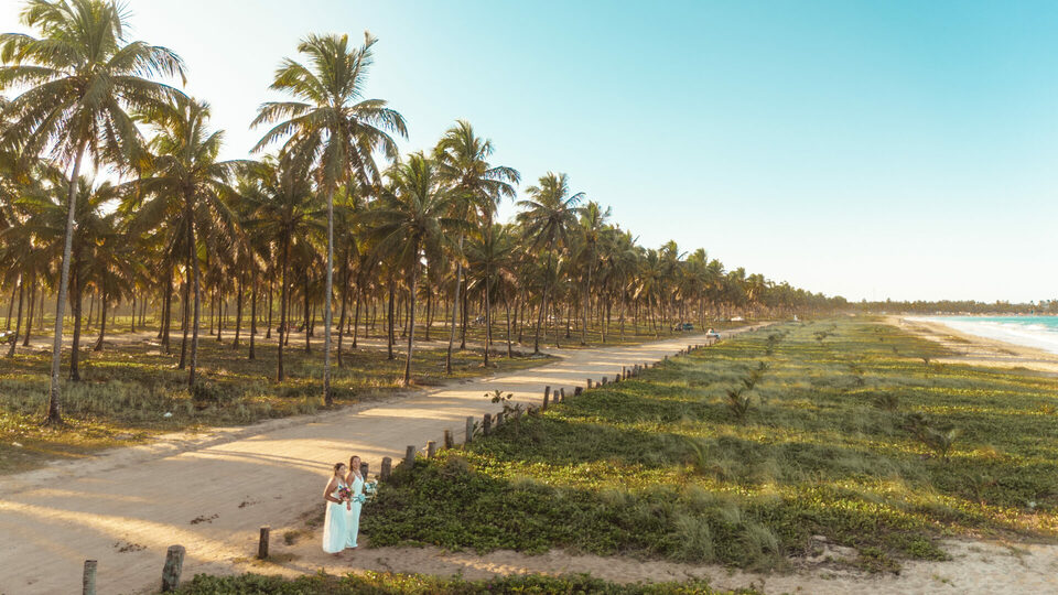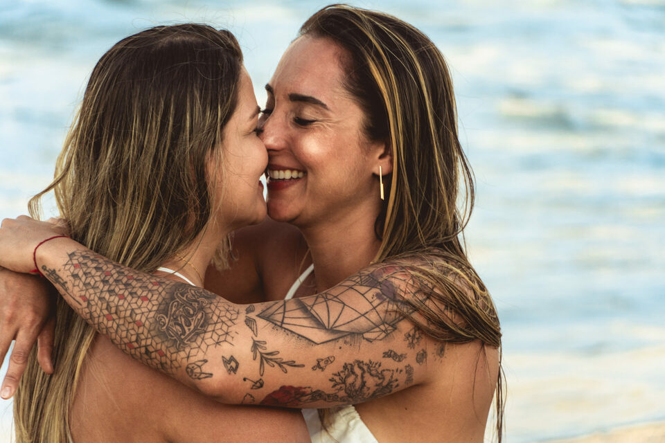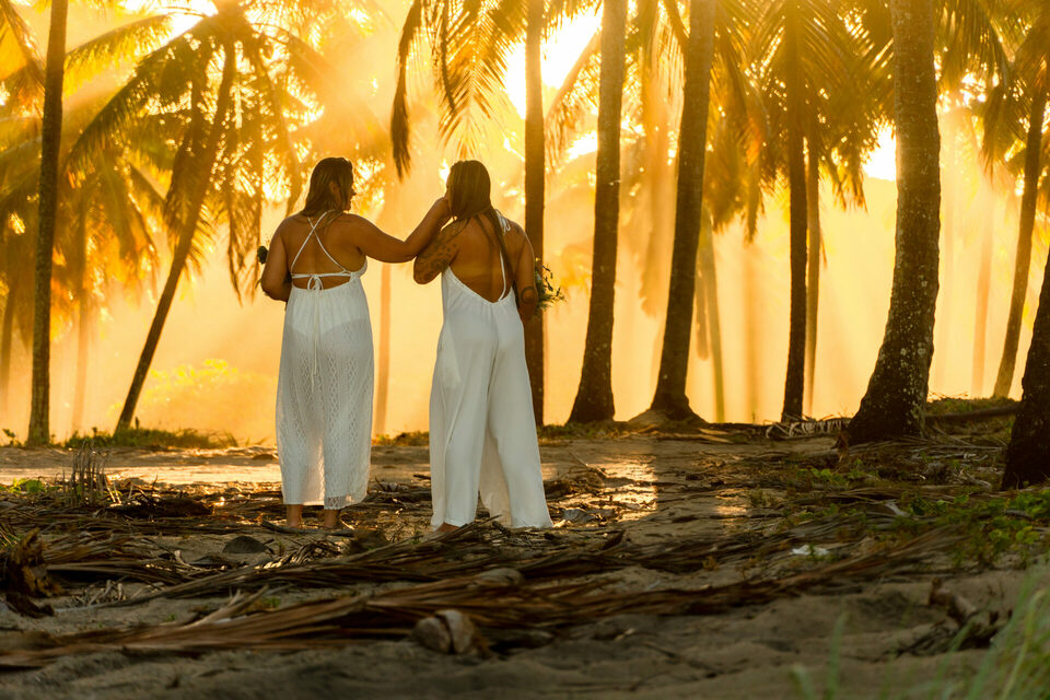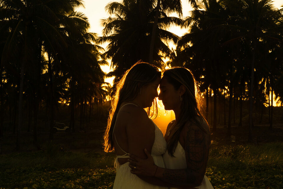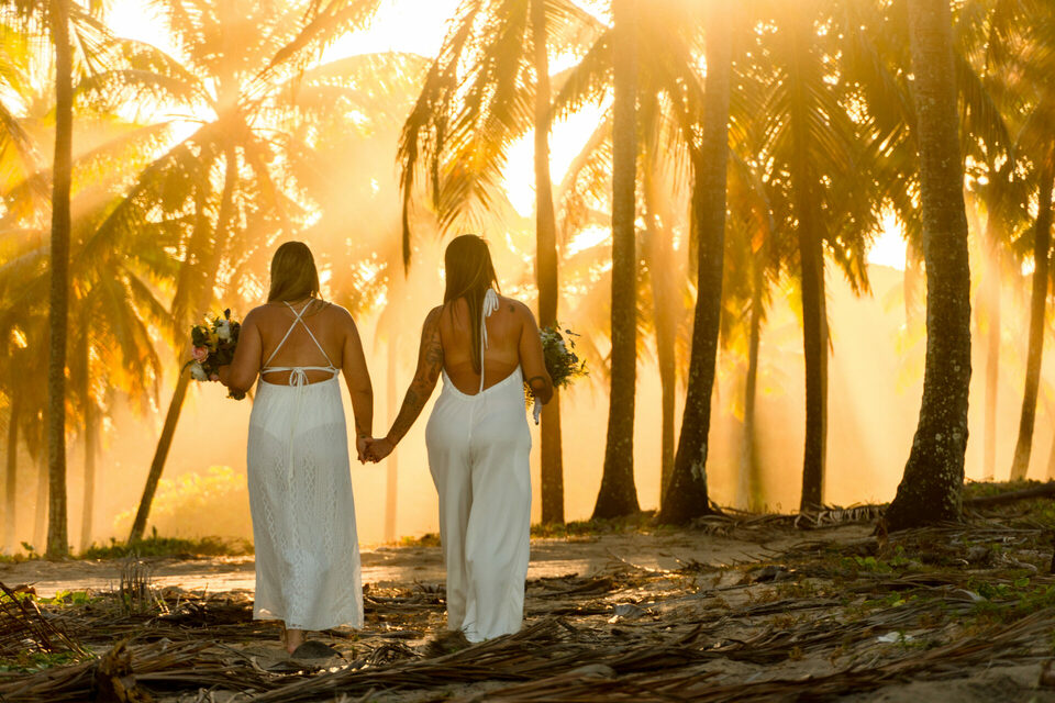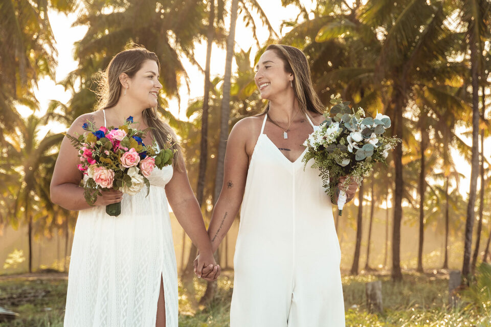 Um casamento intimista pé na areia homoafetivo com duas mulheres lindas, cheio de emoção, numa das praias mais lindas de Pernambuco