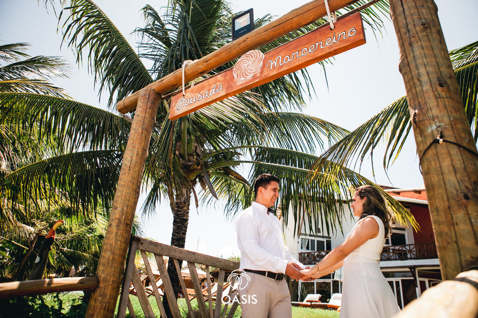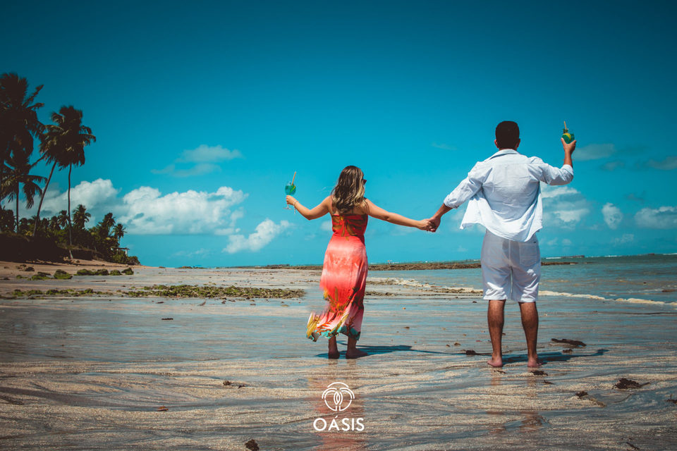 Eles vieram curtir a lua de mel em São Miguel dos Milagres em Alagoas que é uma das mais lindas praias paradisíacas do Nordeste. Fotógrafo ensaio cas