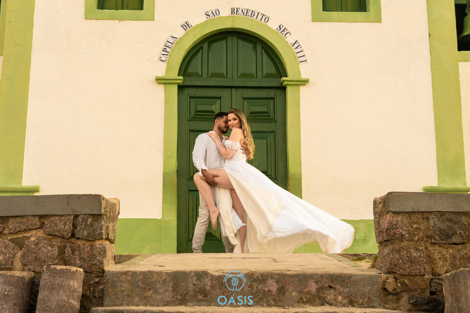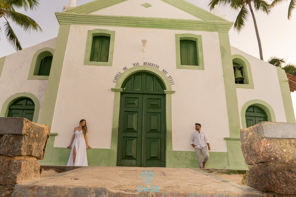 Um pré-wedding com fotos na Igreja de São Benedito conhecida como igrejinha dos Carneiros