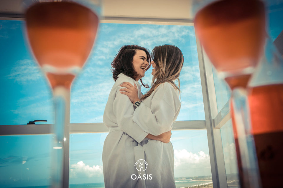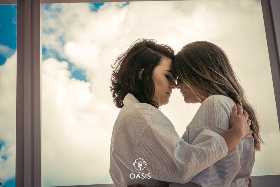 Foi uma vibe massa fazer esse ensaio de casal feminino no meio de uma pool party com os padrinhos. E ainda teve um pedacinho do ensaio com fotos sensu