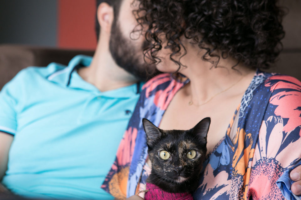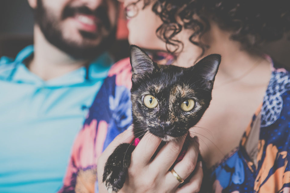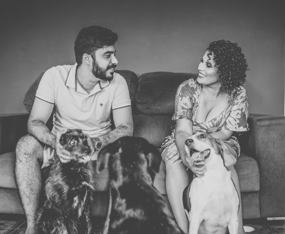 No ensaio desse casal não podia faltar os cachorros e os gatos que eles tanto amam