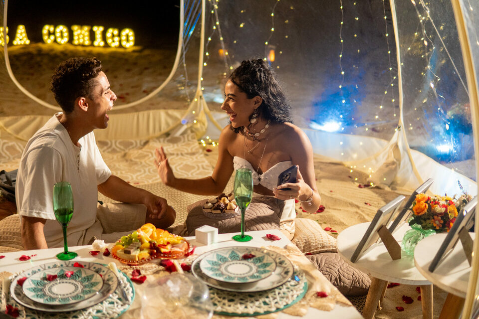 Um ensaio de casal com pedido de casamento massa numa das praias mais lindas do Nordeste