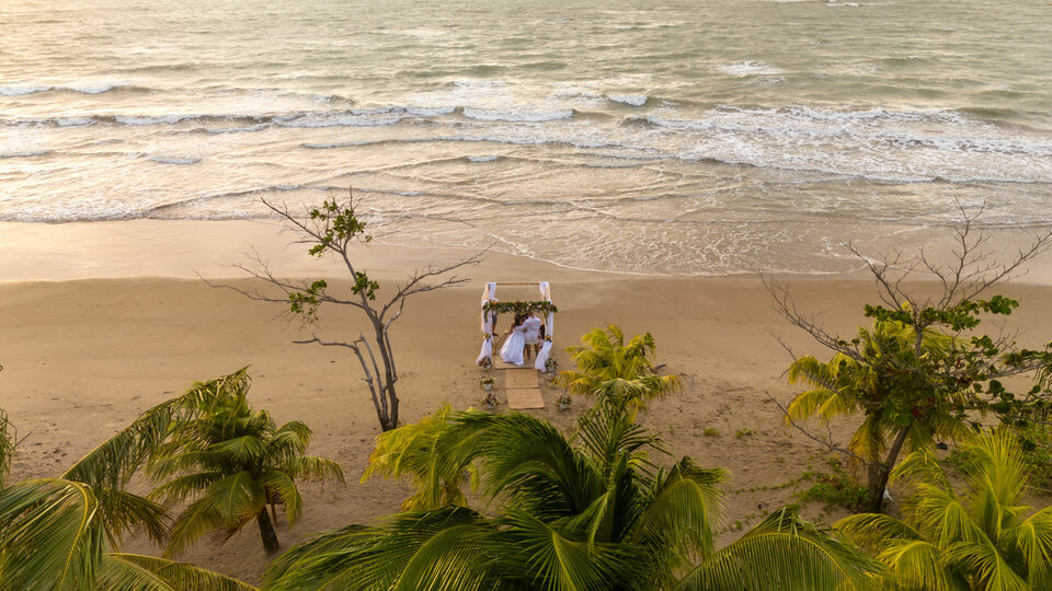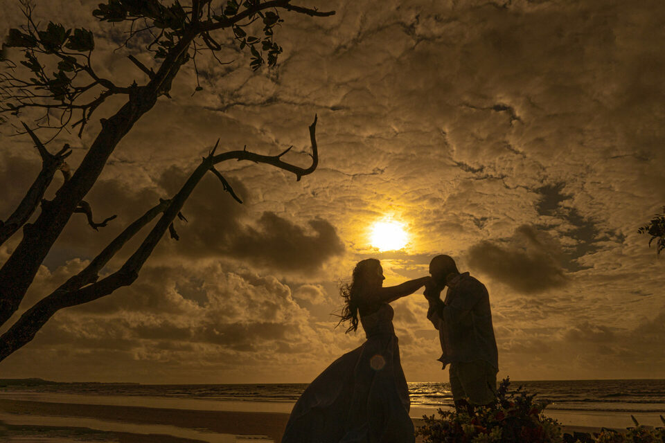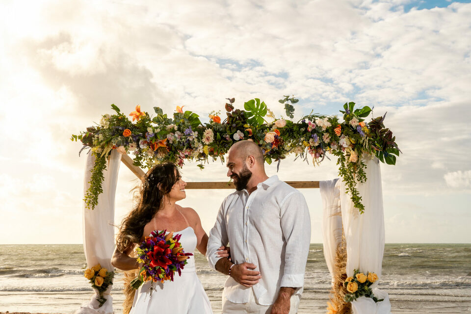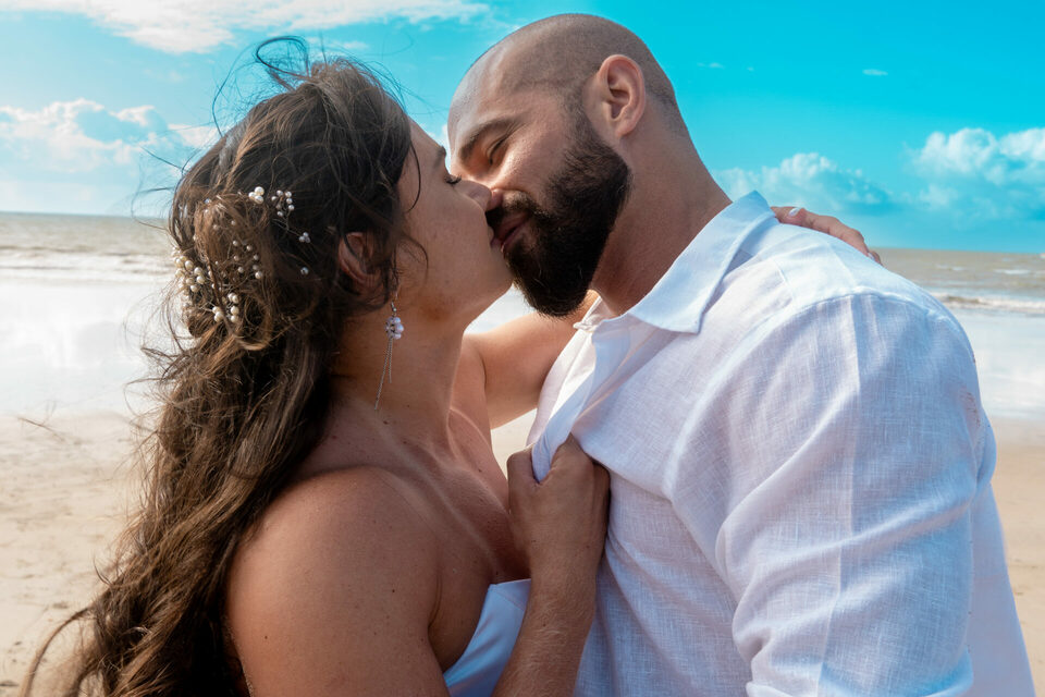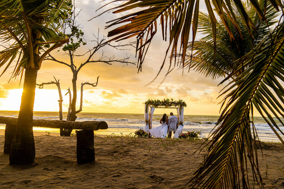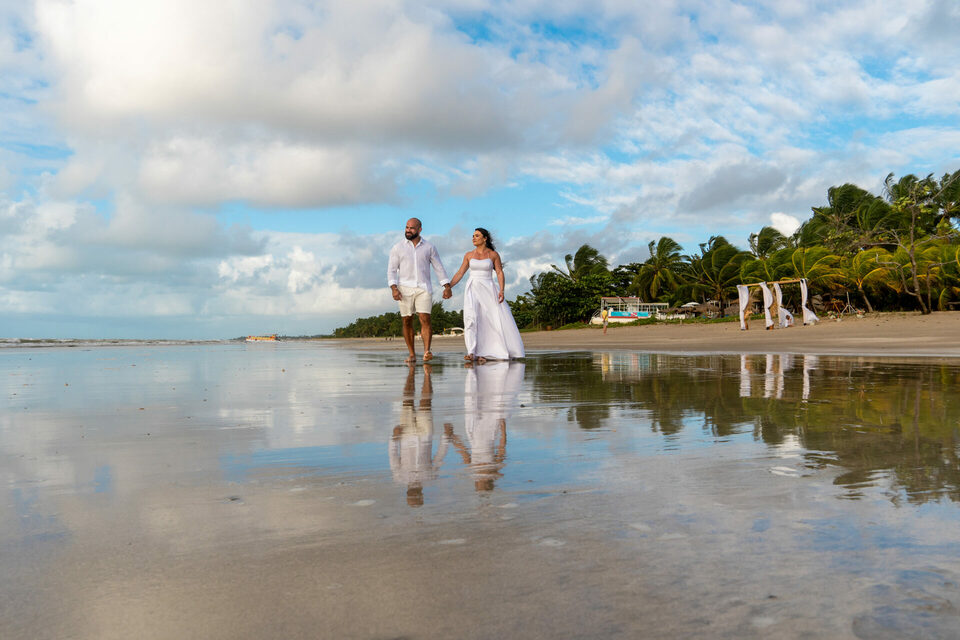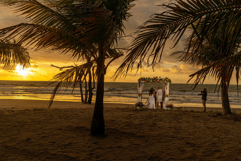Um casamento intimista a dois pé na areia no Caribe brasileiro cocm nosso pacote incluindo cenário, fotos, vídeo, celebrante, drone, músico ao lado do